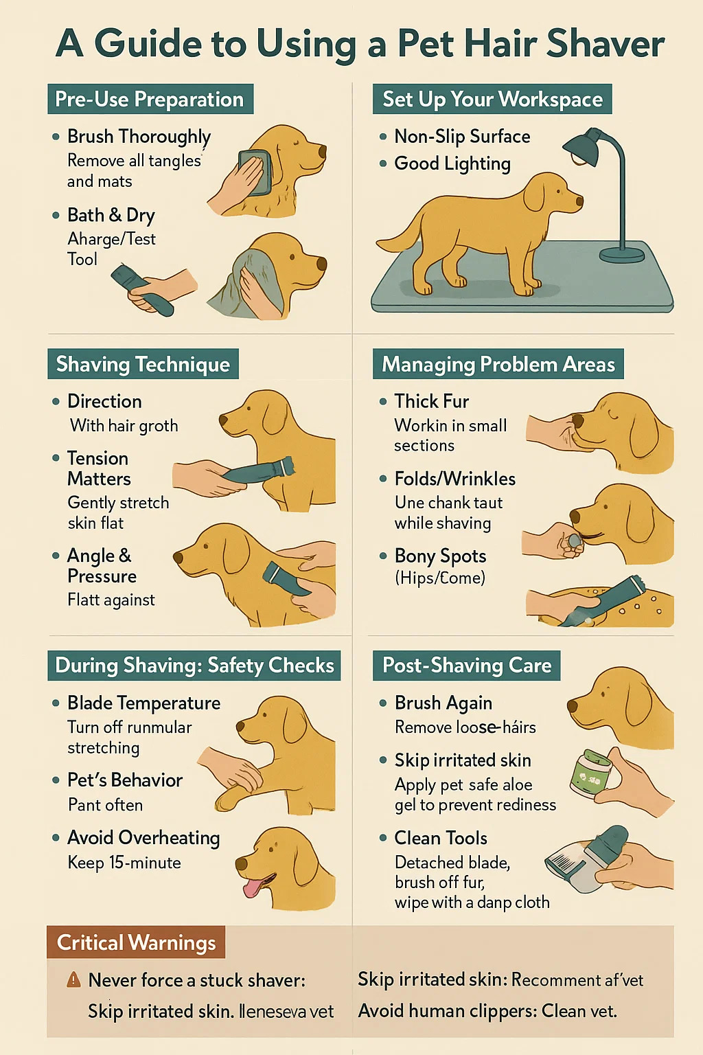 A háziállatszőr borotva Biztonságosan és hatékonyan előkészítést, technikát és utáni gondozást igényel. Itt van egy részletes, lépésről lépésre történő útmutató: