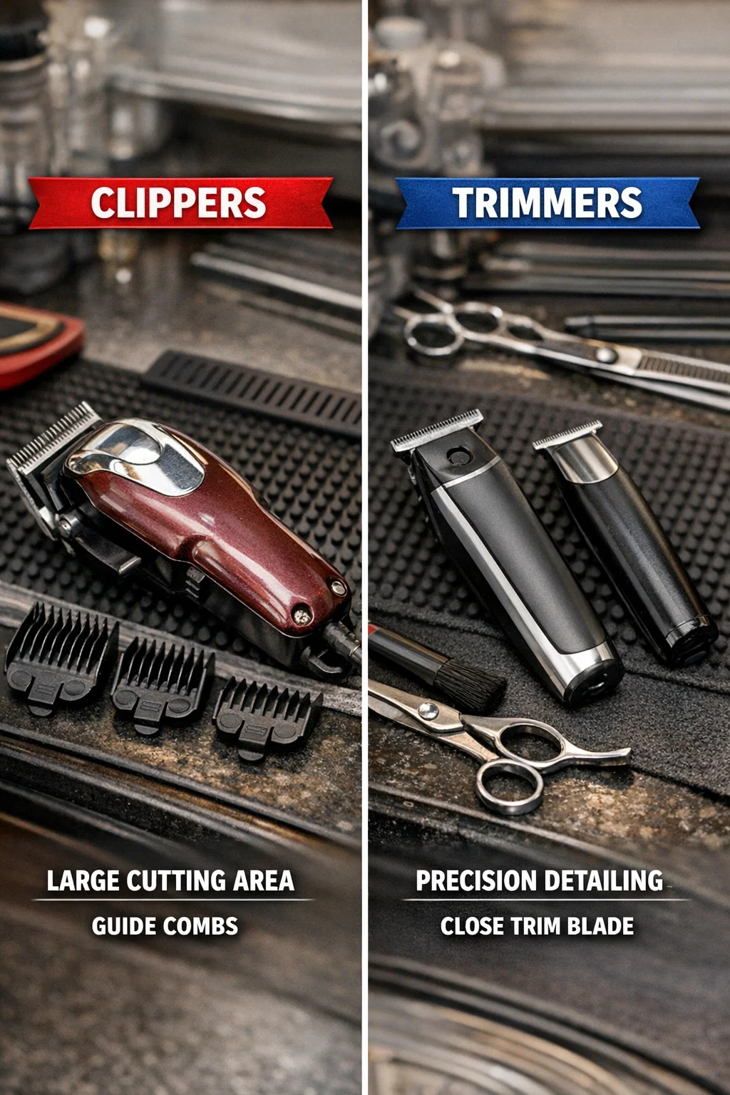 Hajvágók: Nagyobbak és jó érzésűek a kézben. A motor nagyon erős, kifejezetten a vastag, durva haj kezelésére lett tervezve, és kevésbé valószínű, hogy a szőrszálakat elkapja.